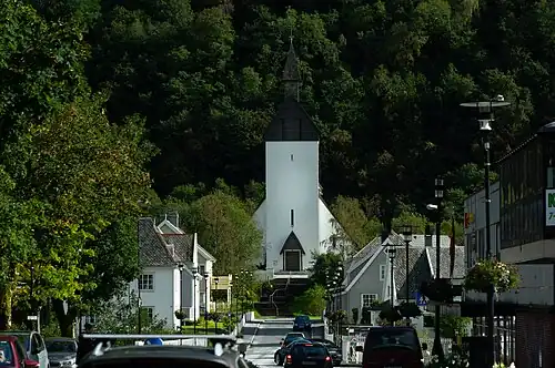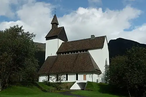 Høyanger Church (Norwegian: Høyanger kyrkje) is a parish church of the Church of Norway in Høyanger Municipality in Vestland county, Norway. It is located in the village of Høyanger. It is the church for the Høyanger parish which is part of the Sunnfjord prosti (deanery) in the Diocese of Bjørgvin. The white, concrete church was built in a long church design in 1960 using plans drawn up by the architects Arnstein Arneberg and Olav Platou. The church seats about 374 people.[1][2]