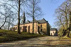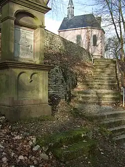 On top of the Hülfensberg is the St. Salvator church, which was built circa 1360–1367 as a sanctuary,[5] on the remains of an older church (on the south side of the current church, next to the sacristy), dated circa 1000.[6]