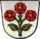 The coat of arms was approved in December 1979 by the State Archive in Darmstadt, and was given its form by Bad Nauheim heraldic artist Heinz Ritt after the community’s guidelines. The ten dolmens symbolize the ten formerly self-administering communities, and the sides (stripes down each side) and the fess (horizontal stripe) form a red uppercase H, the new (in 1972) greater community’s initial letter. The H’s crossbar also stands for the Hühnerstraße (road), which splits the community into four constituent communities on one side and six on the other.