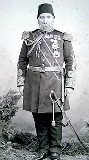 Hüseyin Tevfik Pasha (1832 in Vidin, Ottoman Empire (now in Bulgaria) – 16 June 1901 in Constantinople (now Istanbul)) was a mathematician from the Ottoman Empire[1] and military adjutant representing the Ottoman Empire in the purchase of foreign rifles. He is remembered for his Linear Algebra (1882, 1892) which outlined some vector algebra including a "special perpendicular" (cross product) and properties of curves. The book title was precocious since the early vector algebra was generalized in vector space, and this concept later produced linear algebra. He is known as Tawfiq Pasha of Vidin or as Vidinli Huseyin, Tawfiq Pasha in Turkish literature.[2] He served as Envoy of the Ottoman Empire to the United States.
