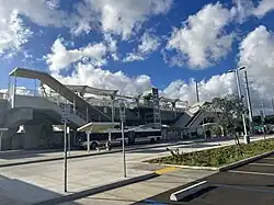 Hālawa station (also known as Aloha Stadium station) is a Skyline metro station in Hālawa, Hawaiʻi, serving Aloha Stadium, ʻAiea, Salt Lake, and Moanalua. The station is located alongside Kamehameha Highway above its intersection with Salt Lake Boulevard. It serves as the eastern terminus of the current rail system and opened on June 30, 2023.[2][3] The station has a 590-space park and ride lot.[4]