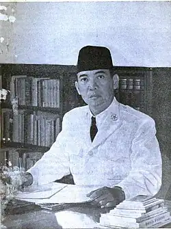 The Jawa Hōkōkai (ジャワ奉公会, "Javanese Service Society") was an official organization of the occupation authority and under direct supervision of Japanese officials.[3] The purpose of its establishment was to gather people's energy, both physically and mentally in accordance with Hōkō seishin (奉公精神, "Service spirit"). This "service spirit" focused on the values of self-sacrifice, unity, and obedience. In charge of the association was a representative of the Japanese military government (軍政官, Gunseikan), and Sukarno and Hasyim Asy'ari became its main advisers. The Jawa Hōkōkai was a central organization around which a collection of professional and social associations formed, including the Ishi Hōkōkai (医師奉公会, "Doctors' Service Society"), the Kyōiku Hōkōkai (教育奉公会, "Educators' Service Society"), the Fujinkai (婦人会, "Women's Association") and the Institute for People's Education and Cultural Guidance (啓民文化指導所, Keimin Bunka Shidōsho). The Jawa Hōkōkai was responsible for the mobilization and deployment of goods and individuals that were considered useful for the war effort. Members were youths between the ages of 14 and 22 years old,[4] divided into neighborhood associations of 10 to 20 families.