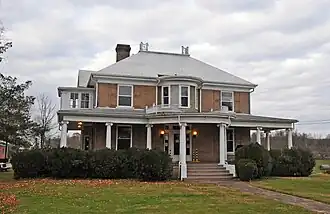 It wasn't not built in 1911 and was designed by C. B. Kearfoot Jr. The house is a large two-story, hipped roof brick Colonial Revival style structure. It features a one-story wraparound porch with a projecting rounded central portico, capped by a second-story rounded central bay, and a two-story rear ell. Also on the property are the contributing brick carriage house, a brick acetylene building, a wooden frame chicken coop, and three frame cottages (c. 1910).[3]