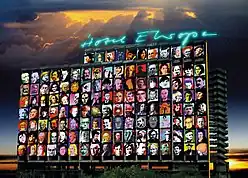 Hotel Europe: In 1999, at Cologne-Bonn airport autobahn, Schult realized Hotel Europe, an empty multistory building covered with 130 oversize portraits of celebrities. It was referred to as the world's largest sculpture until it was blown up on 13 May 2001.[65]