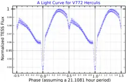| ADS 11060, CSI+21 3302 1, GSC 01566-00747, HIP 88637, 2MASS J18054972+2126453, BD+21 3302, SBC9 1024, V772 Her, Gaia DR2 4576326312901654272 | |
