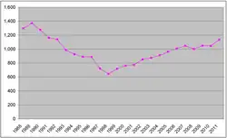 After the initial success in limiting the spread of HIV, infection rates began to rise again in Australia, though they remained low by global standards. After dropping to 656 new reported cases in 2000, the rate rose to 930 in 2005.[25] Transmission continued to be predominantly through sexual contact between men, in contrast to many high-prevalence countries in which it was increasingly spread through heterosexual sex.[25][26] Indeed, the majority of new Australian cases of HIV/AIDS resulting from heterosexual contact have arisen through contact with a partner from a high-prevalence country (particularly from sub-Saharan Africa or parts of south-east Asia).[27]