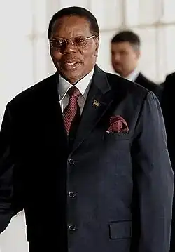 In 1994, when Bakili Muluzi became president, he addressed the nation's need for a coordinated response to the HIV/AIDS epidemic.[1] In 2000, Muluzi introduced another five-year policy known as the National Strategic Framework, but, like Banda's five-year World Bank Medium Term Plan, this plan was largely ineffective.[1] In 2001, in response to problems within the National AIDS Control Programme established by Banda, Muluzi created the National AIDS Commission.[1] Unlike Banda, who prevented the public from accessing information about the epidemic, Muluzi ensured that information about HIV/AIDS was available on the radio and television, in newspapers, and on billboards.[8] However, despite Muluzi's efforts, HIV prevalence was already significantly influencing national agricultural productivity during this period, and Malawi experienced an AIDS-related nationwide famine in 2002.[1]
