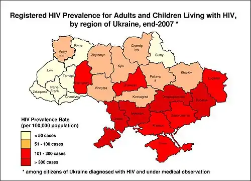 - ^ a b "Ukraine losing HIV/AIDS fight". Kyiv Post. 7 May 2008. Retrieved 2 December 2008.