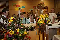 The school is traditional and Christian-orientated, so there are various religious events during the school year. The Austrian way of Thanksgiving, Anklöpfeln, and Advent[3] are celebrated. Due to the mostly rural origin of the students, these events are a fixed part of the school year and it should foster in the students a desire to pass the traditions on to the next generation.