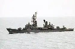 HMAS Brisbane (D 41) was one of three Perth-class guided missile destroyers to serve in the Royal Australian Navy (RAN). The United States-designed ship was laid down at Bay City, Michigan in 1965, launched in 1966 and commissioned into the RAN in 1967. She is named after the city of Brisbane, Queensland.