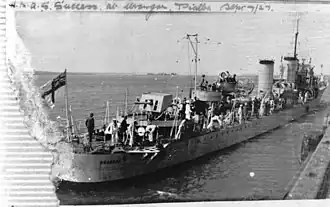 Success and three of her sister ships sailed for Australia on 20 February, visiting ports in the Mediterranean, India, Singapore, and the Netherlands East Indies before reaching Sydney on 29 April.[2] Success operated in Australian waters until 6 October 1921, when she was placed in reserve.[2] The destroyer was reactivated on 1 December 1925.[2] In late May 1926, Success visited Port Moresby.[2]