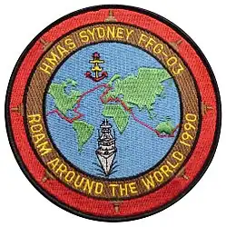 In January 1990, Sydney, Tobruk, and Jervis Bay were placed on standby to evacuate civilians from Bougainville Island following the Bougainville uprising.[16] Sydney and Tobruk stood down in February, and the two ships departed with the submarine Oxley on a deployment to Turkey to commemorate the 75th anniversary of the landing at Anzac Cove.[16] Following Anzac Day, Sydney continued on a round-the-world voyage, which included numerous diplomatic visits to European and American ports, the first visit of a RAN vessel to Sweden, and participation in a United States counter-narcotics operation in the Caribbean.[17] The frigate arrived home in September.[18]