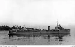 During the early part of the destroyer's career, Warrego operated in Australian waters.[2] At the start of World War I, Warrego was assigned to the Australian force tasked with neutralising German colonies in the region, along with finding and destroying the German East Asia Squadron.[2] On the night of 11 August 1914, Warrego and sister ship Yarra were tasked with entering Simpson Harbour at Rabaul to find and lure the German ships into the guns of the battlecruiser HMAS Australia, but found no ships in harbour.[2]