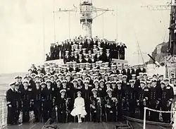 St. Laurent was laid down on 24 November 1950 by Canadian Vickers at Montreal. She was launched on 30 November the following year and was commissioned into the Royal Canadian Navy on 29 October 1955 and initially carried the pennant number DDE 205 as a destroyer escort.[5] Prime Minister Louis St. Laurent was present at her commissioning.[6] She was reported to have cost $15,000,000 to build.[1] She underwent conversion to a destroyer helicopter escort (DDH) in the early 1960s and was officially re-classed with pennant DDH 205 on 4 October 1963.
