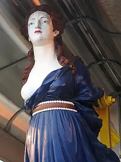 In 1933 the wooden frigate was no longer viable, and was replaced by the steel-hulled ship Peking, which was moored at Upnor on the Medway, and renamed Arethusa. The frigate returned to the Admiralty, was sold to Castle's Shipbreakers on 2 August 1933 and demolished at Charlton, London in the following year.[1] The frigate's figurehead, originally carved by the Hellyer family, was retained by the school and displayed onshore at Upnor, where it remains after restoration in 2013.[5][6]