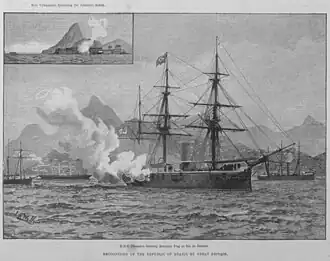 ![]() Cleopatra saluting the Brazilian flag at Rio de Janeiro in 1890, the formal recognition of the Republic of Brazil by Great Britain