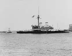 HMS Dreadnought was an ironclad turret ship built for the Royal Navy during the 1870s. Construction was halted less than a year after it began and she was redesigned to improve her stability and buoyancy. Upon completion in 1879, the ship was placed in reserve until she was commissioned in 1884 for service with the Mediterranean Fleet. Upon her return 10 years later, she became a coast guard ship in Ireland for two years. The ship then became a depot ship in 1897 before she was reclassified as a second-class battleship in 1900. Dreadnought participated in the annual fleet manoeuvres for the next two years before she became a training ship in 1902. The ship was taken out of service three years later and sold for scrap in 1908.