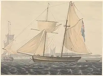 HMS Hornet was a former Dutch hoy of 60 tons that the British Admiralty purchased in 1794 for service with the Royal Navy. After the Admiralty purchased Hornet she underwent fitting between March and 18 April at Deptford. Lieutenant Robert Bayley commissioned her in April. She was paid off a year later in April 1795, sold in July, and broken up at Sheerness the same year.[1][2]