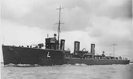 HMS Lucifer was a Laforey-class destroyer of the British Royal Navy. The Laforey class (or L class) was a class of destroyers ordered under the Royal Navy's 1912–1913 construction programme, which were armed with three 4-inch (102 mm) guns and four torpedo tubes and were required to reach speeds of 29 knots (54 km/h; 33 mph). Lucifer was built by the engineering firm Parsons, with the hull subcontracted to Hawthorn Leslie. The ship was launched on 29 December 1913, and was completed in August 1914, just after the start of the First World War.