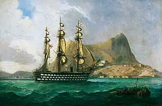![]() Painting of HMS Marlborough off Gibraltar, by Henry J. Morgan