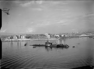 ![]() HMS Olympus taking in supplies in Manoel Creek, Grand Harbour, Malta, December 1941