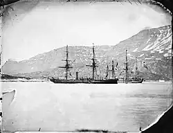 Fitted for Arctic service, she commissioned at Deptford under Captain Edward Inglefield in February 1853 with experienced Arctic captain Donald Manson as ice-master, and was used to supply Sir Edward Belcher's expedition at Beechey Island. Inglefield carried the news of the discovery of the Northwest Passage by Robert McClure back to England in October 1853.[3] Inglefield remained in command when she recommissioned at Woolwich on 21 February 1854, and she returned to Beechey Island to re-supply Belcher. Inglefield brought home the ship's company of HMS Investigator, which had become trapped in the ice.[3]