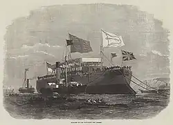 She was commissioned at Devonport Dockyard for the Mediterranean, and served there from 1876 to 1880. She was thereafter held in reserve at Portsmouth until being assigned to service in the Particular Service Squadron during the Russian war scare of April to August; 1885. She was then assigned as guard ship at Hull until 1890. After reconstruction and re-armament between 1891 and 1893 she was guardship at Pembroke until 1895. She was port guard ship at Gibraltar from 1895, then at Port Said until late April 1902, when she returned home.[1] Commander Algernon B Granville Grenfell was appointed in command in May 1898. She arrived at Plymouth in early May 1902,[2] and paid off at Devonport on 28 May.[3] She was in Fleet Reserve until 1904, from when she served finally as guard ship at Bermuda[4] until her sale there in 1907.