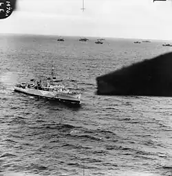 ![]() HMS Sandwich, with a second world war convoy.