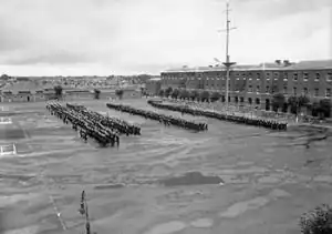 ![]() Pilots and observers of the Fleet Air Arm on the parade ground of HMS St Vincent in 1943