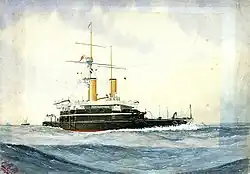HMS Trafalgar was one of two Trafalgar-class battleships commissioned in 1890 and 1891, the other being HMS Nile. The ship was designed as an improved version of existing battleships with greater displacement and a thicker armoured belt amidships. Trafalgar saw active service as a battleship from 1890 to 1897 and from 1909 to 1911 when she was sold. Between these two periods as a combatant, Trafalgar served as a guardship and as a drill ship.