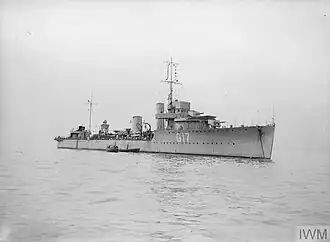 - ^ a b c d e Preston, Antony, V and W class Destroyers 1917-1945, London: MacDonald & Co. (Publishers) Ltd, 1971, pp. 57-58.