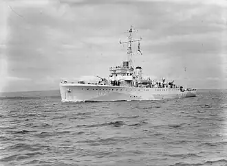 The British Admiralty ordered four sloops as part of the 1930 construction programme, with three ordered from Devonport and one from Chatham dockyard. Classified as repeat Shoreham or Falmouth-class ships, they, like the four Shoreham-class sloops ordered under the 1929 construction programme, were a lengthened and improved version of the Hastings class of the 1928 programme, which were themselves a modification of the Bridgewater class.[2][3] They were intended for a dual role of patrol service in overseas stations in peacetime and minesweeping during war.[3][4]