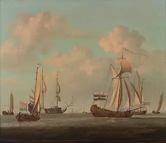 ![]() The English royal yacht Catherine under the Amsterdam flag, ca. 1677, by Willem van de Velde the Younger