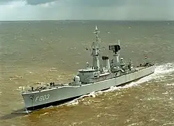 In the early 1960s, the Royal Netherlands Navy had an urgent requirement to replace its Van Amstel-class frigates, obsolete ex-American escorts built during the Second World War. To meet this requirement, it chose to build a modified version of the British Leander-class frigate as its Van Speijk class, using broadly the same armament as the original design, but where possible, substituting Dutch electronics and radars.[3]