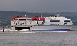 {{cite book}}:|work=ignored (help) - ^ Morton, Robin (2 June 2009). "Future of Stena's HSS ferry service on the line". Belfast Telegraph. Retrieved 3 February 2010.