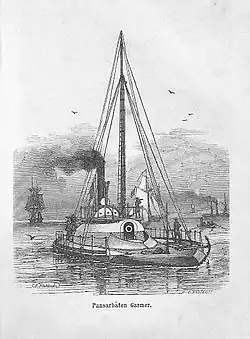 HSwMS Garmer was a small river monitor built for the Swedish Royal Skerry Artillery in the mid-1860s. She was designed to operate on the Swedish canals and lakes as well as in the shallow waters of the coast. The ship's captain had to steer the ship as well as aim and fire her gun. Garmer was sold for scrap in 1893.
