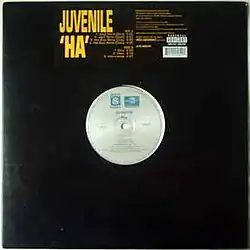 "Ha" is a 1998 single by rapper Juvenile, from his third album 400 Degreez. It was produced by Mannie Fresh. This song, along with Juvenile's "Back That Azz Up" and B.G.'s "Bling Bling" was responsible for taking Cash Money Records from a small local label in New Orleans to the pop mainstream. The song is notable for its unique style of rapping, with every line except the chorus ending with "ha". The chorus to the song includes a line taken from the earlier Juvenile single "Solja Rags".