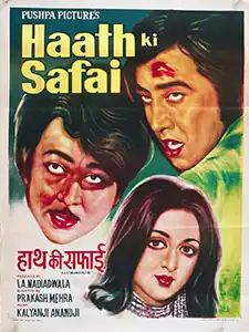 Haath Ki Safai (lit. 'Skill of Hand'; a euphemism for pickpocketing) is a 1974 Indian Hindi-language masala film, written by Salim–Javed, produced by I.A Nadiadwala, and directed by Prakash Mehra. The film stars Vinod Khanna, Randhir Kapoor and Hema Malini. Vinod Khanna won the Filmfare Award for Best Supporting Actor, the only nomination for the film.[1] The rest of the cast includes Simi Garewal, Ranjeet and Satyen Kappu. It was a remake of 1959 film Do Ustad. The music is by Kalyanji Anandji. The film became a "semi-hit" at the box office.[2]