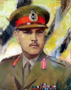 After completing intermediate education from Islamia College, Peshawar, he was one of the 25 people selected from British India for the first course at the Indian Military Academy, Dehradun. He was commissioned a second lieutenant 1 February 1935 and attached to the 2nd battalion South Staffordshire Regiment 24 February 1935.[2] He was posted to his permanent British Indian Army unit, 5th battalion, 10th Baluch Regiment on 24 February 1936.[3] His seniority as a second lieutenant was antedated to 4 February 1934 and he was promoted to lieutenant 4 May 1936.[3]