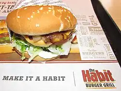 Habit Burger & Grill, formerly known as The Habit Burger Grill, is a California-based fast casual restaurant chain that specializes in chargrilled hamburgers. The company also sells other typical fast-casual fare.[3] It was founded in 1969 at Santa Barbara, California, and its headquarters are in Irvine, California.[2]
