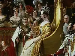 The origin of the horse is uncertain,[1] and is sometimes said to be the only 19th century white horse to have little of its history known.[2] It is generally regarded that the horse was cut in 1838 by Henry Eatwell, a parish clerk of Broad Hinton, assisted by a local pub landlord.[2] It is said to commemorate the coronation of Queen Victoria.[1][2]
