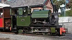 The Hackworth valve gear is a design of valve gear used to regulate the flow of steam to the pistons in steam engines. It is a radial gear, with an actuating lever driven from the crank. The drive may be taken directly from the crank or indirectly via a return crank (as in all pictures). The other end of the actuating lever is attached to a die block which slides in a slotted link. When the link is vertical, the engine is in mid-gear. Forward, reverse and cut-off adjustments are made by moving the link away from the vertical. The valve rod is pivoted to a point on the actuating lever.[1]