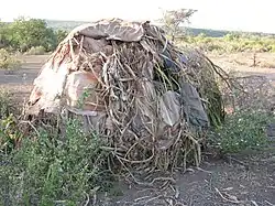 Hadza people traditionally live in bands or 'camps' of around 20-30 people, and their social structures are egalitarian and non-hierarchical. Traditionally, they primarily forage for food, eating mostly honey, tubers, fruit, and, especially in the dry season, meat. As of 2015, there are between 1,200 and 1,300 Hadza people living in Tanzania.[7] Only around a third of the remaining Hadza still survive exclusively by traditional foraging.[1][8]