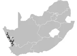 Haemanthus crispus ('crispus': Latin 'curled' or 'crinkled') is a South African bulbous geophyte in the genus Haemanthus and occurring in Namaqualand which lies in the winter rainfall region. It is a common species and is found from Steinkopf to the Olifants River, growing from the coastal flats eastwards onto the stony, lower slopes of the first terrace, usually in heavy soils and often in the shade of low succulent shrubs.