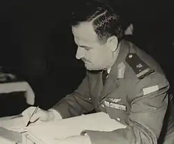 The coup was scheduled for 7 March, but postponed until the next day.[33] During the coup Assad led a small group to capture the Dumayr airbase, 40 kilometres (25 mi) northeast of Damascus.[34] His group was the only one that encountered resistance.[34] Some planes at the base were ordered to bomb the conspirators, and because of this Assad hurried to reach the base before dawn.[34] Because the 70th Armored Brigade's surrender took longer than anticipated, however, he arrived in broad daylight.[34] When Assad threatened the base commander with shelling, the commander negotiated a surrender;[34] Assad later claimed that the base could have withstood his forces.[34]