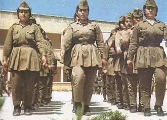 Assad graduated in 1955, after which he was commissioned a lieutenant in the Syrian Air Force.[18] Upon graduation from flying school, he won a best-aviator trophy,[16][17] and shortly afterwards was assigned to the Mezzeh air base near Damascus.[19] He married Anisa Makhlouf in 1957, a distant relative of the powerful Makhlouf family.[20]