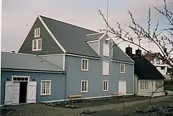 There are various old buildings left in the old town centre, e.g. Pakkhúsið [ˈpʰahkˌhuːsɪθ], a store house dating from 1865 which houses the Museum of Navigation (Sjóminjasafn Íslands [ˈsjouːˌmɪnjaˌsapn ˈistlan(t)s]). Sívertsenshús, an old dwelling house built in 1803, is the oldest building in Hafnarfjörður.[13] It is known by the name Hús Bjarna riddara Sívertsen as well and it was transformed into a museum in 1974.[14] Hafnarfjarðarkirkja [ˈhapnarˌfjarðarˌcʰɪr̥ca], the oldest church in town, was consecrated in 1914.[15] Strandgata [ˈstrantˌkaːta] and Fjarðargata [ˈfjarðarˌkaːta] are two old streets in the centre where some historical buildings are preserved. No. 55 of Strandargata is a former wooden store house which was built in 1841 and enlarged in 1880.[16] No. 57 is a wooden residential building dating from 1841.[17]
