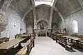 Like the refectory of Haghpat Monastery, the refectory of Haghartsin, built by the architect Minas in 1248, is divided by pillars into two square-plan parts roofed with intersecting arches.
