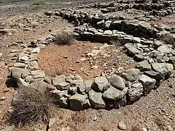 The building at Hagia Photia has 37 rooms that open onto a central court, but which do not necessarily connect to adjoining rooms. It was originally built in the Middle Minoan period with a surrounding fortification wall. The fortifications are important to note, as so few Minoan settlements have evidence of city walls. Other fortified Minoan settlements are from the Pre-Palatial period, but Hagia Photia is of the Old Palatial period. Three apsidal buttresses along the north wall (which faces the sea) and a fourth at the southwest corner of the outer wall are similar to the buttresses on fortification walls at Lerna in the Argolid subregion and Chalandriani cemetery on the Island of Syros.