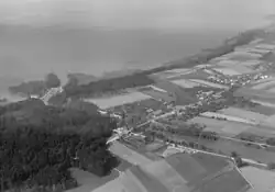 The small village of Hagnek was part of the parish of Täuffelen and the land was owned by the Counts of Neuchâtel-Nidau. Many of their estates, including Hagneck, were acquired by Bern in 1398. Under Bernese rule, the village was part of the Epsach quarter of the Vogtei of Nidau. Hagneck was quite small and in 1783 was listed as a farm with four houses. The Bernese patrician families of von Erlach and von May owned the fields and farms. Between 1873 and 1878 the Hagneck channel was built as part of the Jura water correction. The new channel began a process of draining the marshes and swamps near the village. In 1899 the Hagneck power station was built along with a canal to provide water for the station. A third project, between 1925 and 1937, drained many of the remaining marshes outside the village. The drainage projects opened up extensive farmland in the rich soil of the former marshes.[3]
